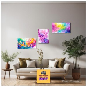 Mit Freuden präsentiere ich heute wieder einmal einen Farbenknaller. Diese schönen abstrakten Kunstbilder in den Farben von Rosa über Blau bis hin zu dem warmen Gelb und Rot, werden dein Zuhause mit Leben befüllen. Ich habe sie extra kräftig gestaltet, damit sie ihre Schönheit richtig zu Glanz bringen können. 🎨🧨