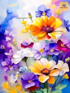 Diese faszinierenden Blumenarrangements ,aus Blumen im Aquarell Stil und Stiefmütterchen im Ölfarben Stil, sind nicht nur ein wahrer Festtag Zauber für das Auge. Sondern auch wunderbare Erinnerungen daran, wie wichtig es ist, die oft übersehenen kleinen Juwelen des Alltags zu schätzen. Jede Blüte erzählt ihre eigene, zauberhafte Geschichte, und wenn die strahlenden Farben vor uns blühen, zaubern sie uns ein freudiges Lächeln ins Gesicht! 💖💐