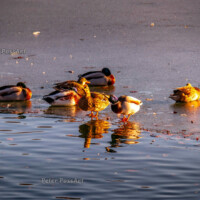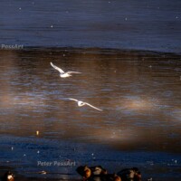 Es wirkte als würden sie einen Angriff auf die Enten starten. Im Tiefflug über das Eis flogen sie blitzschnell zur Nahrungsquelle.