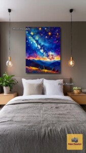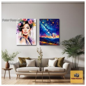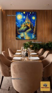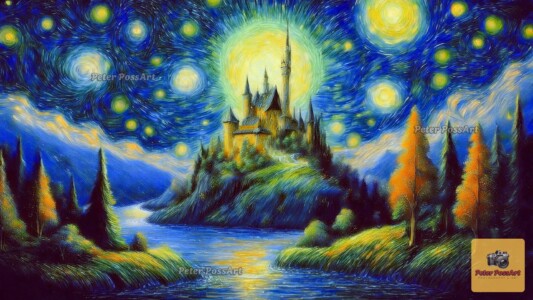 Im Bereich Landschaft habe ich mich an ein für mich klassische Herbst Fluss Gemälde entschieden, was sich immer gut in gemütlichen Räumlichkeiten macht. Auch der Van Gogh Stil mit Schloss lädt zum Träumen ein was mich direkt zu den Sternenhimmel Bilder mit dem Namen „Stardust“ führt. 🍂🏰