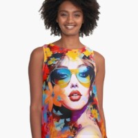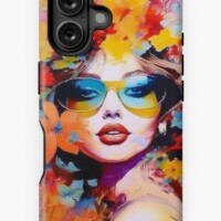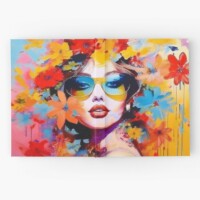 Die 60er Jahre zeigen sich in diesem Kunstwerk ganz klar, den typischen großen Sonnenbrillen mit den bunten Blumen. Flower-Power lässt grüßen. 😁🌼